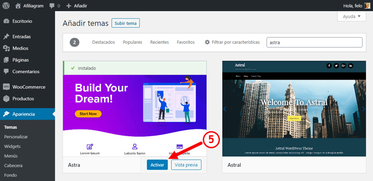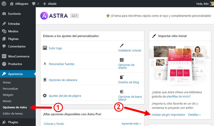 Instala las “plantillas de inicio” de Astra