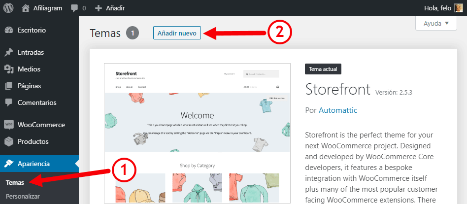 En el menú lateral haz clic en: Apariencia > Temas