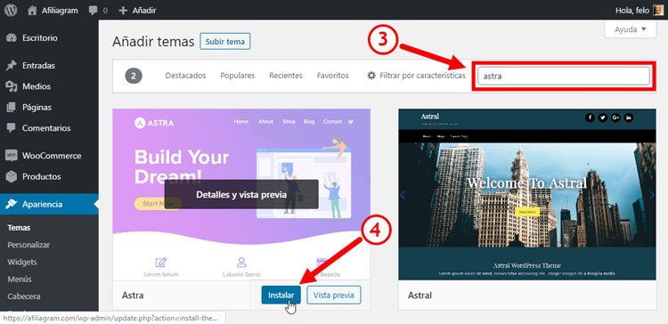 Luego escribe astra en el campo de búsqueda