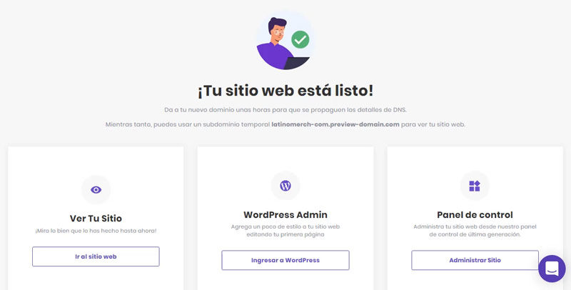 Una vez seleccionada la locación podrás acceder a tu panel de control de WordPress